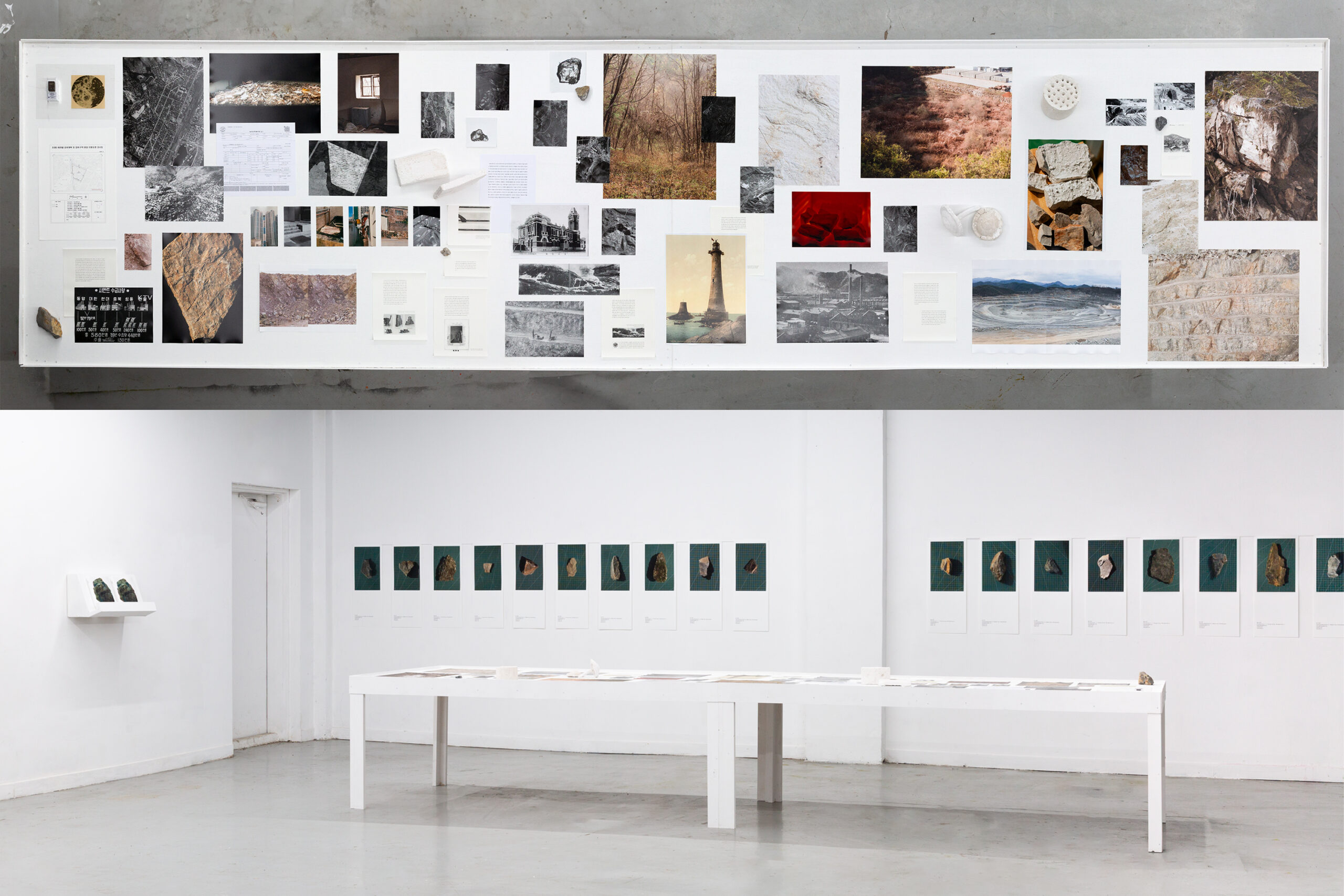 튜나리의 작업은 ‘역사를 뒤로 접어보는’ 행위, 장소와 그 속에 담긴 시간, 이야기에 대한 탐구에서 출발합니다. 물리적으로는 사라졌지만 여전히 우리의 기억과 ‘안’에 남아 있는 장소들, 그 잔재들을 추적하며 장소성과 시간성을 조형 언어로 재구성하는 데에 관심이 있습니다. 최근에는 고향을 이루던 물질인 ‘콘크리트’ 조각이 촉발한 시간성을 탐구합니다. ‘석회석(콘크리트의 재료)’의 시간을 경유하며, 개인의 기억과 인류의 역사를 넘어 DEEP TIME(지구의 시간)의 연결 짓기를 시도합니다.